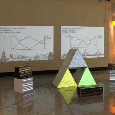 We scraped real-time weather data from airport sensors in Bangalore and its “sister city,” San Francisco, captured and decoded atmospheric variables such as temperature, pressure, and humidity. These datasets were then sonified and broadcast via FM radio, transforming raw data into a sound experience.
